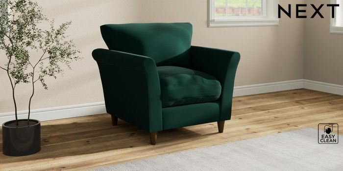 7.3.1 Buy Hartley Relaxed Sit Armchair Plush Velvet Easy Clean Bottle Green Low Conical - Mid from the Next UK online shop Click here to use our accessible website
