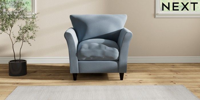 7.2.10 Buy Hartley Relaxed Sit Armchair Relaxed Linen Look Mid Blue Low Conical - Dark from the Next UK online shop Click here to use our accessible website