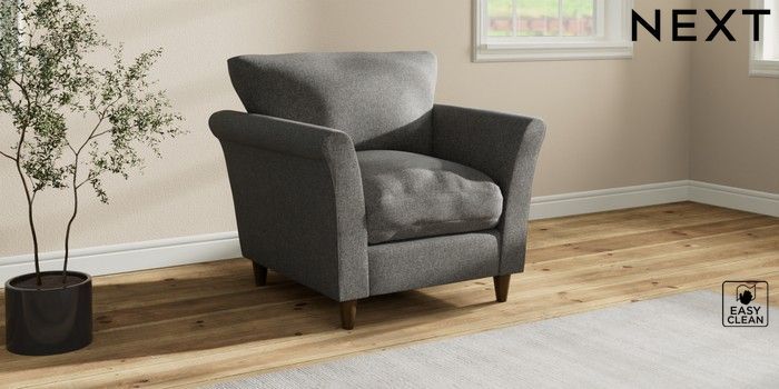 7.3.1 Buy Hartley Relaxed Sit Armchair Tweedy Blend Easy Clean Dark Grey Low Conical - Mid from the Next UK online shop Click here to use our accessible website