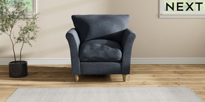 7.2.10 Buy Hartley Relaxed Sit Armchair Tweedy Chenille Navy Blue Low Conical - Light from the Next UK online shop Click here to use our accessible website