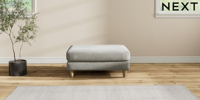 7.2.10 Buy Hartley Relaxed Sit Footstool Chunky Chenille Light Grey Low Conical - Light from the Next UK online shop Click here to use our accessible website
