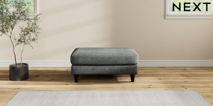 7.2.10 Buy Hartley Relaxed Sit Footstool Cotswold Chenille Dark Grey Low Conical - Dark from the Next UK online shop Click here to use our accessible website
