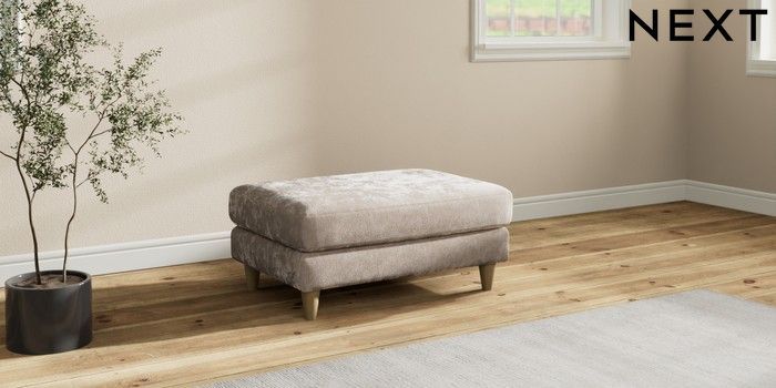 7.3.1 Buy Hartley Relaxed Sit Footstool Distressed Velour Mid Natural Low Conical - Light from the Next UK online shop