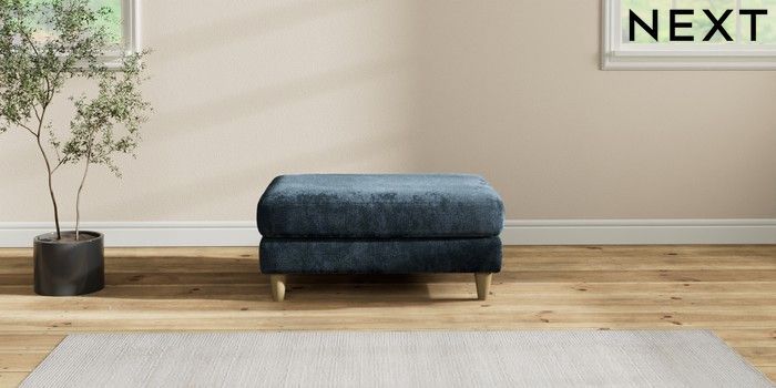 7.2.10 Buy Hartley Relaxed Sit Footstool Distressed Velour Midnight Blue Low Conical - Light from the Next UK online shop Click here to use our accessible website