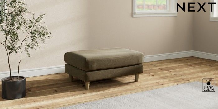 7.3.1 Buy Hartley Relaxed Sit Footstool Fine Chenille Easy Clean Dark Moss Green Low Conical - Light from the Next UK online shop