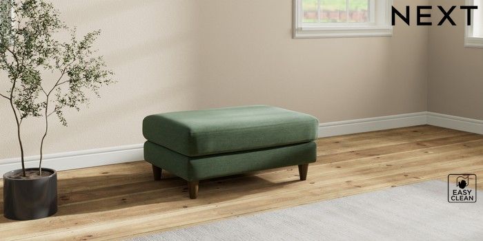 7.3.1 Buy Hartley Relaxed Sit Footstool Fine Chenille Easy Clean Mid Khaki Green Low Conical - Mid from the Next UK online shop