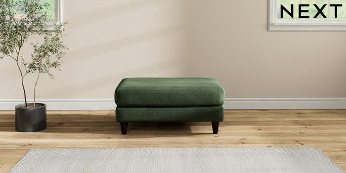 7.2.10 Buy Hartley Relaxed Sit Footstool Luxe Chenille Dark Green Low Conical - Dark from the Next UK online shop Click here to use our accessible website