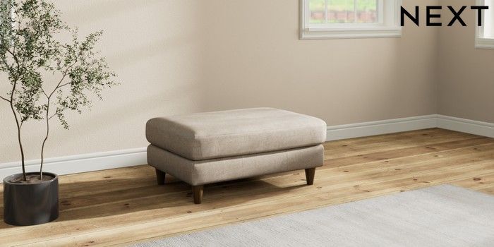7.3.1 Buy Hartley Relaxed Sit Footstool Plush Chenille Light Natural Low Conical - Mid from the Next UK online shop