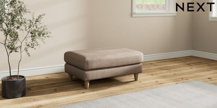 7.3.1 Buy Hartley Relaxed Sit Footstool Plush Chenille Mid Natural Low Conical - Light from the Next UK online shop