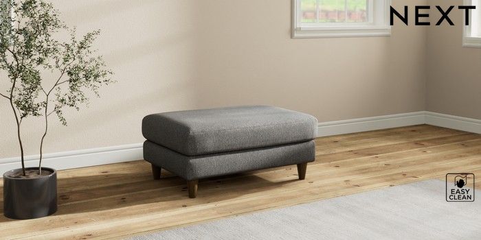 7.3.1 Buy Hartley Relaxed Sit Footstool Tweedy Blend Easy Clean Dark Grey Low Conical - Mid from the Next UK online shop