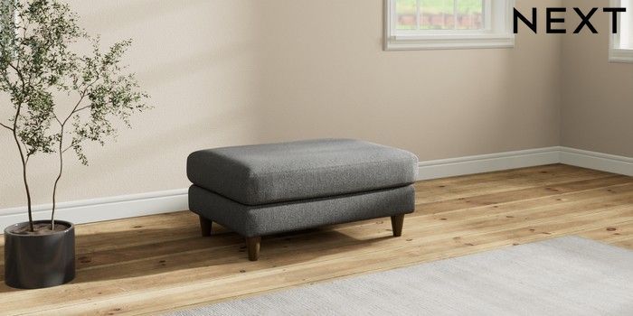 7.3.1 Buy Hartley Relaxed Sit Footstool Tweedy Chenille Dark Grey Low Conical - Mid from the Next UK online shop
