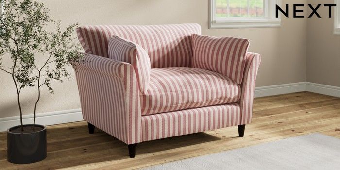 7.3.1 Buy Hartley Relaxed Sit Love Seat Bold Chenille Stripe Dark Pink Low Conical - Dark from the Next UK online shop