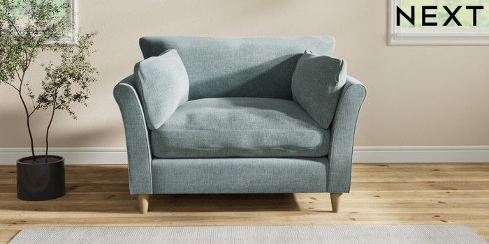 7.2.10 Buy Hartley Relaxed Sit Love Seat Chunky Chenille Light Teal Green Low Conical - Light from the Next UK online shop Click here to use our accessible website