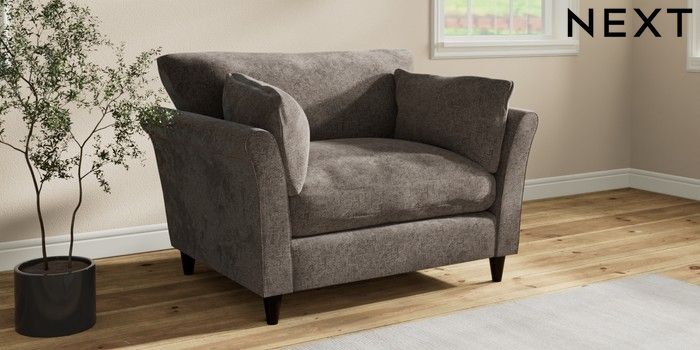 7.3.1 Buy Hartley Relaxed Sit Love Seat Chunky Chenille Mink Brown Low Conical - Dark from the Next UK online shop