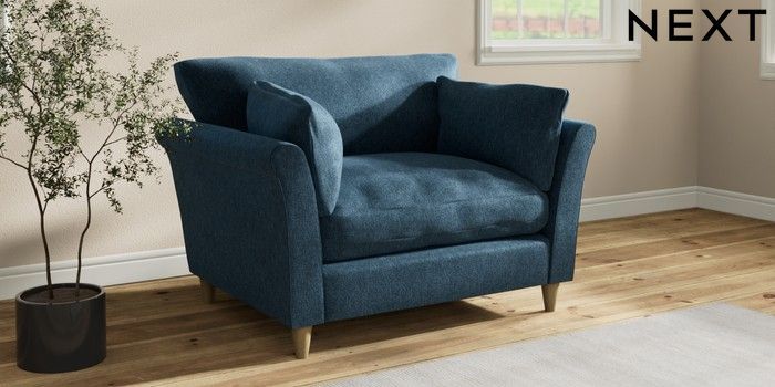 7.3.1 Buy Hartley Relaxed Sit Love Seat Cotswold Chenille Dark Blue Low Conical - Light from the Next UK online shop