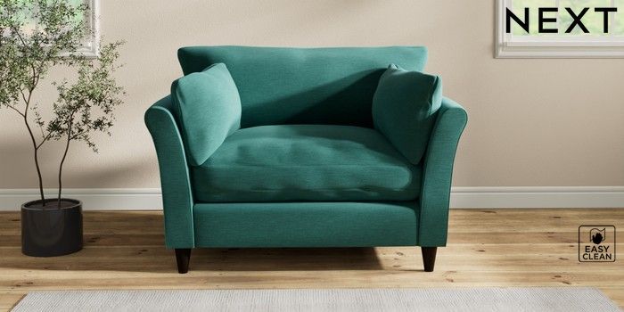 7.2.10 Buy Hartley Relaxed Sit Love Seat Fine Chenille Easy Clean Dark Juniper Green Low Conical - Dark from the Next UK online shop Click here to use our accessible website