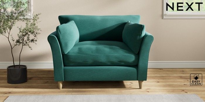 7.2.10 Buy Hartley Relaxed Sit Love Seat Fine Chenille Easy Clean Dark Juniper Green Low Conical - Light from the Next UK online shop Click here to use our accessible website
