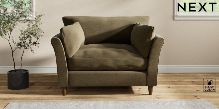 7.2.10 Buy Hartley Relaxed Sit Love Seat Fine Chenille Easy Clean Dark Moss Green Low Conical - Mid from the Next UK online shop Click here to use our accessible website