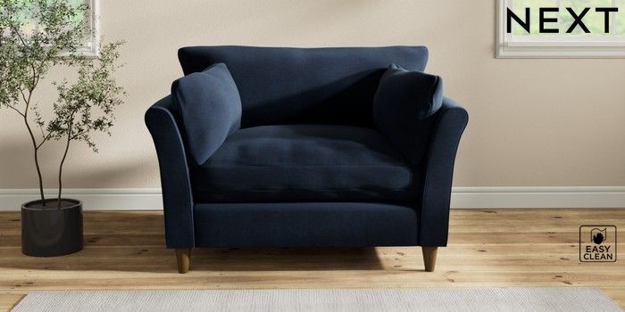 7.2.10 Buy Hartley Relaxed Sit Love Seat Fine Chenille Easy Clean Dark Navy Blue Low Conical - Mid from the Next UK online shop Click here to use our accessible website