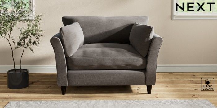 7.2.10 Buy Hartley Relaxed Sit Love Seat Fine Chenille Easy Clean Dark Smoke Grey Low Conical - Dark from the Next UK online shop Click here to use our accessible website