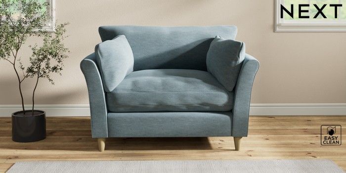 7.2.10 Buy Hartley Relaxed Sit Love Seat Fine Chenille Easy Clean Mid Blue Low Conical - Light from the Next UK online shop Click here to use our accessible website