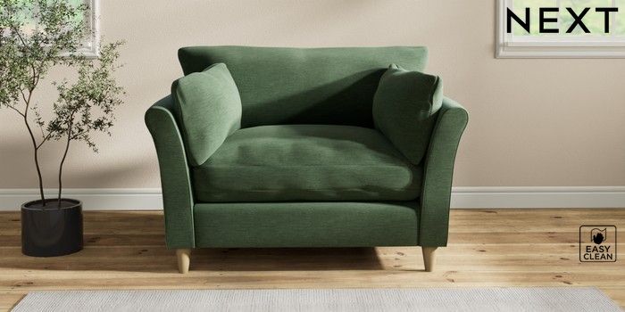 7.2.10 Buy Hartley Relaxed Sit Love Seat Fine Chenille Easy Clean Mid Khaki Green Low Conical - Light from the Next UK online shop Click here to use our accessible website