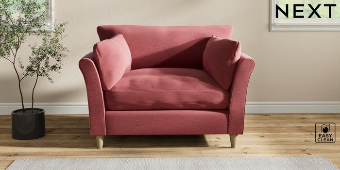 7.2.10 Buy Hartley Relaxed Sit Love Seat Fine Chenille Easy Clean Mid Pink Low Conical - Light from the Next UK online shop Click here to use our accessible website
