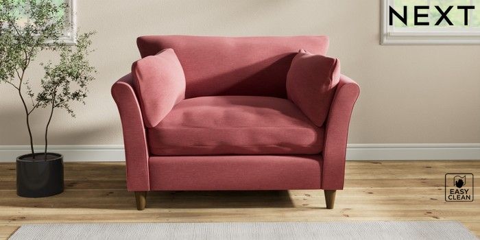 7.2.10 Buy Hartley Relaxed Sit Love Seat Fine Chenille Easy Clean Mid Pink Low Conical - Mid from the Next UK online shop Click here to use our accessible website