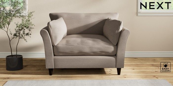 7.3.1 Buy Hartley Relaxed Sit Love Seat Fine Chenille Easy Clean Mid Taupe Brown Low Conical - Dark from the Next UK online shop Click here to use our accessible website