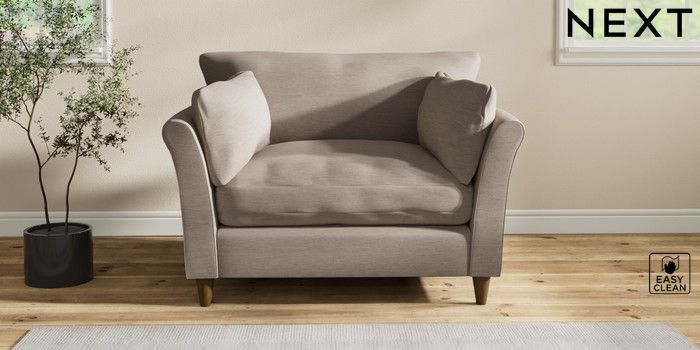 7.2.10 Buy Hartley Relaxed Sit Love Seat Fine Chenille Easy Clean Mid Taupe Brown Low Conical - Mid from the Next UK online shop Click here to use our accessible website