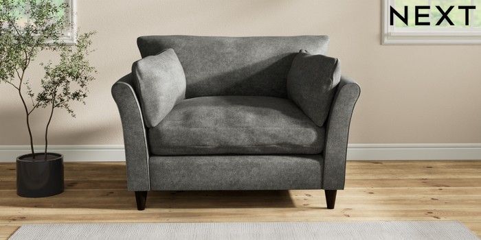 7.2.10 Buy Hartley Relaxed Sit Love Seat Plush Chenille Dark Grey Low Conical - Dark from the Next UK online shop Click here to use our accessible website