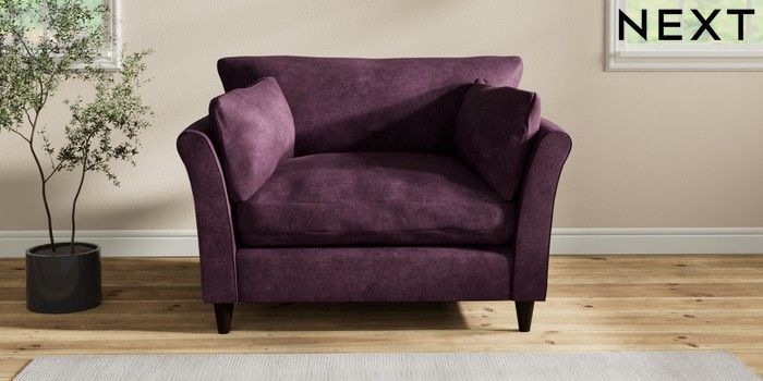 7.2.10 Buy Hartley Relaxed Sit Love Seat Plush Chenille Dark Plum Purple Low Conical - Dark from the Next UK online shop Click here to use our accessible website