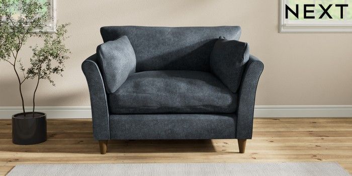 7.2.10 Buy Hartley Relaxed Sit Love Seat Plush Chenille Slate Blue Low Conical - Mid from the Next UK online shop Click here to use our accessible website