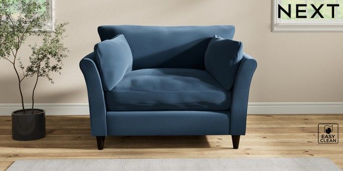 7.3.1 Buy Hartley Relaxed Sit Love Seat Plush Velvet Easy Clean Airforce Blue Low Conical - Dark from the Next UK online shop Click here to use our accessible website