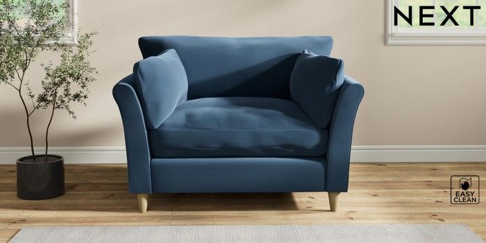 7.2.10 Buy Hartley Relaxed Sit Love Seat Plush Velvet Easy Clean Airforce Blue Low Conical - Light from the Next UK online shop Click here to use our accessible website