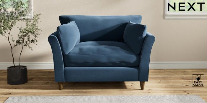 7.2.10 Buy Hartley Relaxed Sit Love Seat Plush Velvet Easy Clean Airforce Blue Low Conical - Mid from the Next UK online shop Click here to use our accessible website
