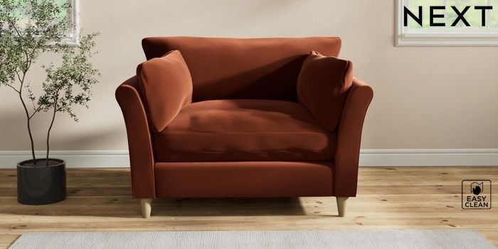 7.2.10 Buy Hartley Relaxed Sit Love Seat Plush Velvet Easy Clean Ginger Orange Low Conical - Light from the Next UK online shop Click here to use our accessible website