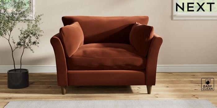 7.2.10 Buy Hartley Relaxed Sit Love Seat Plush Velvet Easy Clean Ginger Orange Low Conical - Mid from the Next UK online shop Click here to use our accessible website