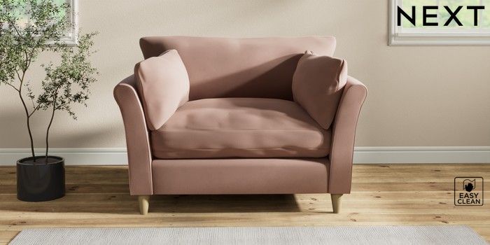 7.2.10 Buy Hartley Relaxed Sit Love Seat Plush Velvet Easy Clean Mid Natural Low Conical - Light from the Next UK online shop Click here to use our accessible website