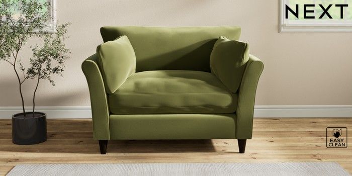 7.3.1 Buy Hartley Relaxed Sit Love Seat Plush Velvet Easy Clean Mid Olive Green Low Conical - Dark from the Next UK online shop Click here to use our accessible website