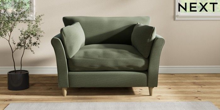 7.2.10 Buy Hartley Relaxed Sit Love Seat Relaxed Linen Look Dark Green Low Conical - Light from the Next UK online shop Click here to use our accessible website