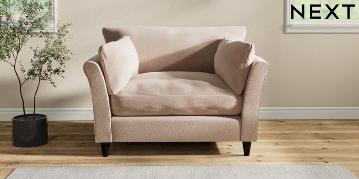 7.2.10 Buy Hartley Relaxed Sit Love Seat Relaxed Linen Look Mid Natural Low Conical - Dark from the Next UK online shop Click here to use our accessible website