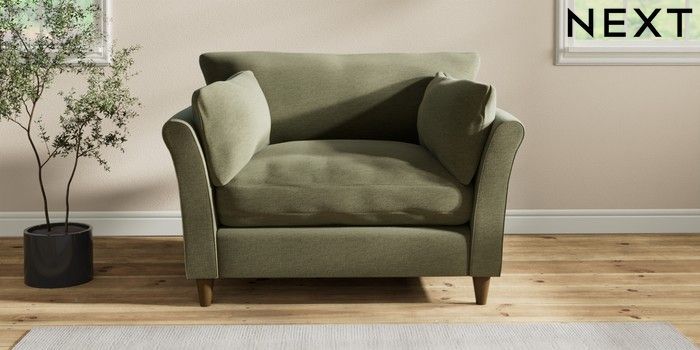 7.2.10 Buy Hartley Relaxed Sit Love Seat Ripple Chenille Mid Moss Green Low Conical - Mid from the Next UK online shop Click here to use our accessible website