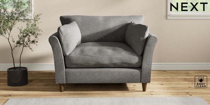 7.2.10 Buy Hartley Relaxed Sit Love Seat Tweedy Blend Easy Clean Dark Grey Low Conical - Mid from the Next UK online shop Click here to use our accessible website