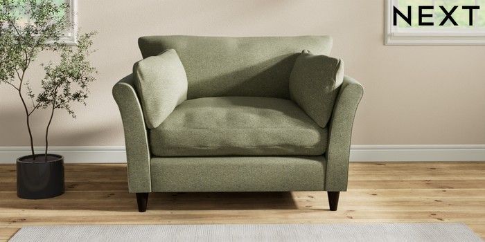 7.3.1 Buy Hartley Relaxed Sit Love Seat Tweedy Chenille Mid Moss Green Low Conical - Dark from the Next UK online shop Click here to use our accessible website
