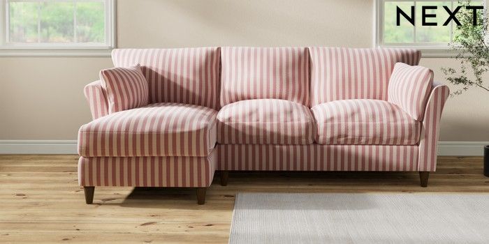 7.3.1 Buy Hartley Relaxed Sit Medium Sofa Chaise - Left Hand Bold Chenille Stripe Dark Pink Low Conical - Mid from the Next UK online shop