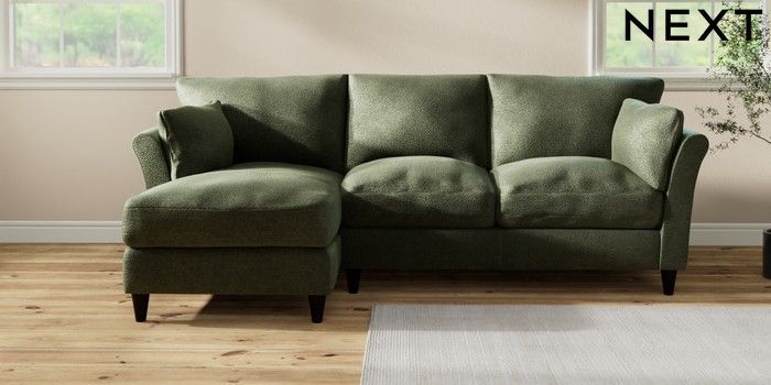 7.3.1 Buy Hartley Relaxed Sit Medium Sofa Chaise - Left Hand Boucle Chenille Dark Moss Green Low Conical - Dark from the Next UK online shop