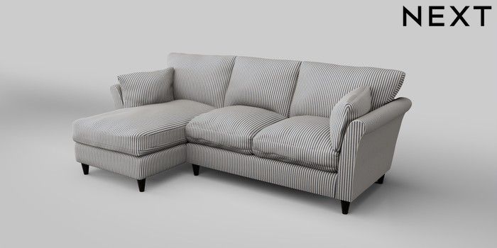 6.12.1 Buy Hartley Relaxed Sit Medium Sofa Chaise - Left Hand Chenille Stripe Slate Blue Low Conical - Dark from the Next UK online shop Click here to use our accessible website
