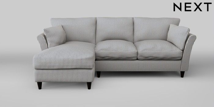 7.0.3 Buy Hartley Relaxed Sit Medium Sofa Chaise - Left Hand Chenille Stripe Slate Blue Low Conical - Dark from the Next UK online shop Click here to use our accessible website