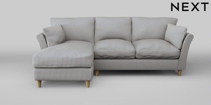 7.0.3 Buy Hartley Relaxed Sit Medium Sofa Chaise - Left Hand Chenille Stripe Slate Blue Low Conical - Light from the Next UK online shop Click here to use our accessible website